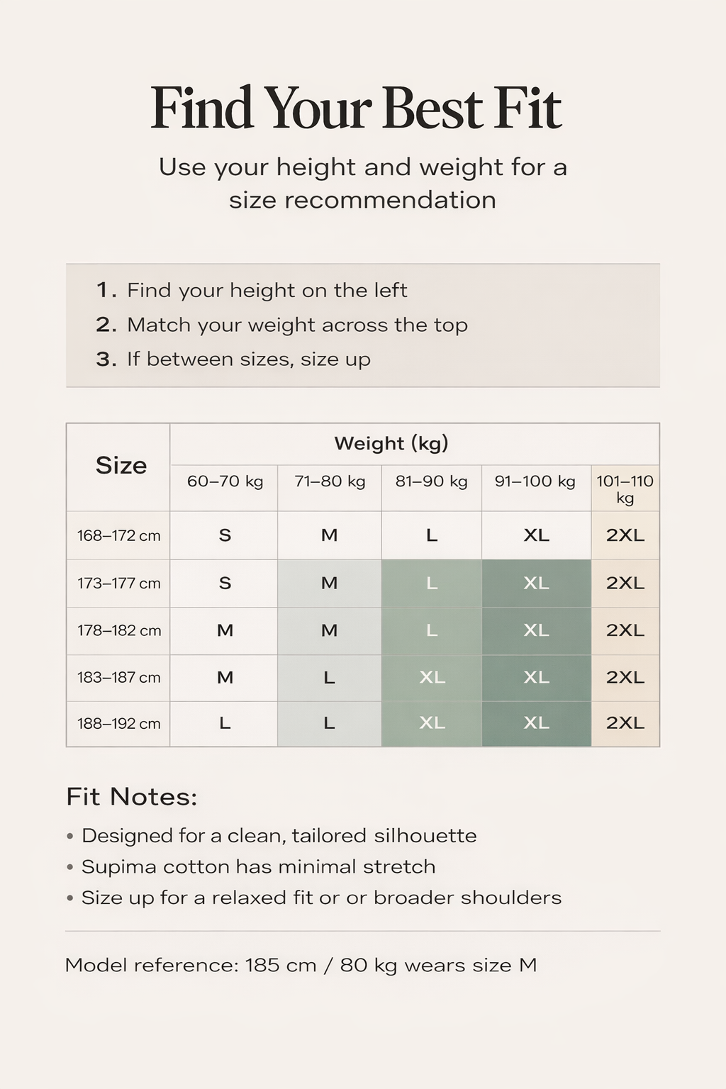 Cut for a refined silhouette—trim through the chest and arms to highlight your build, relaxed at the waist for natural drape and all-day comfort. Designed to look sharp on its own or layered, this is the T-shirt you reach for every day.